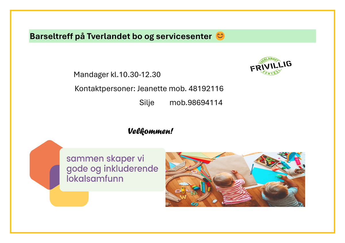 Kl. 10:30 - 12:30, Tverlandet Bo- og servicesenter